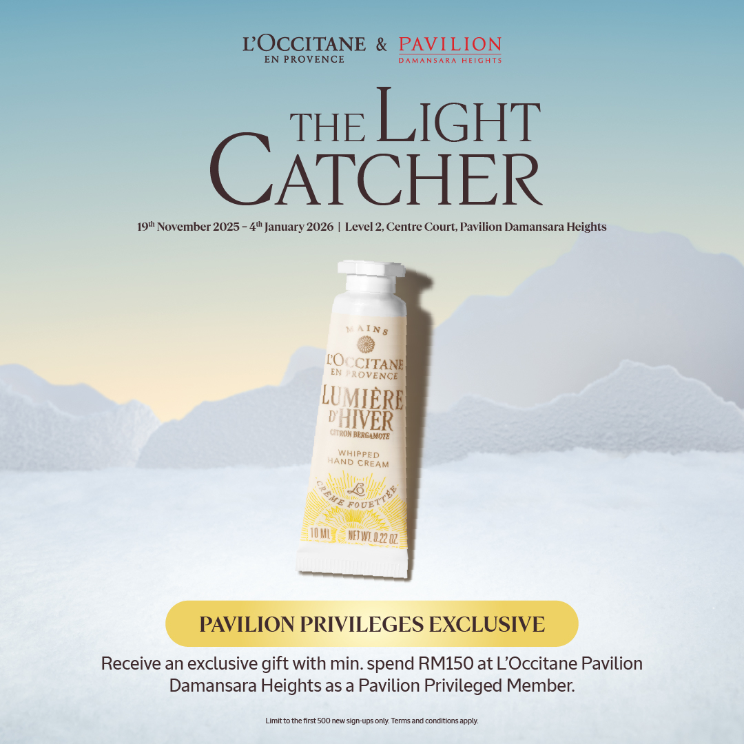Enjoy an exclusive gift with a minimum spend of RM150 on any L’Occitane products, exclusively for Pavilion Privileged Members.